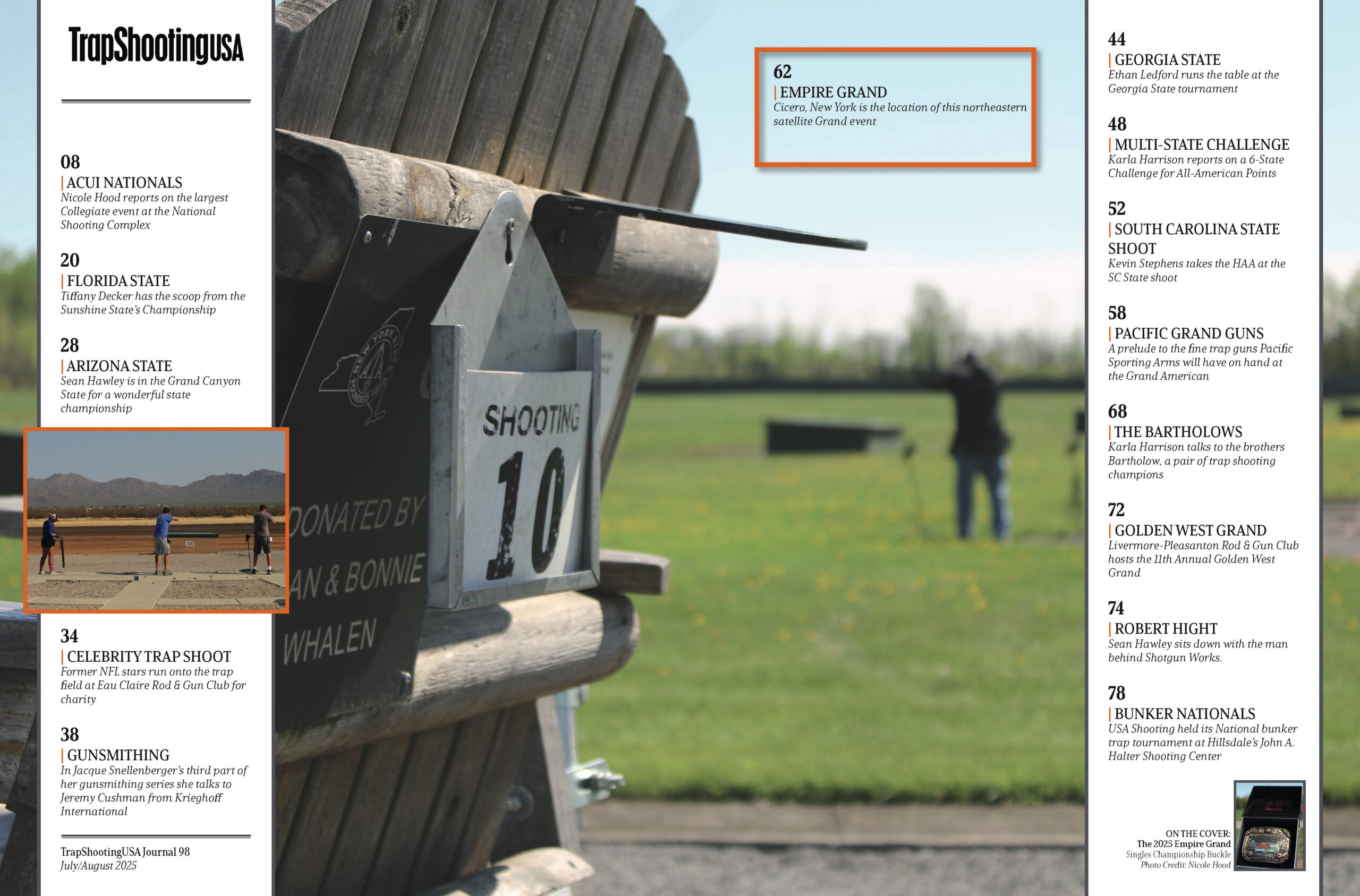 Sean Hawley brings readers face-to-face with Robert Hight of Shotgun Works (p. 74). And for Olympic hopefuls and international fans, we’ve got full coverage of the Bunker Nationals at Hillsdale (p. 78).