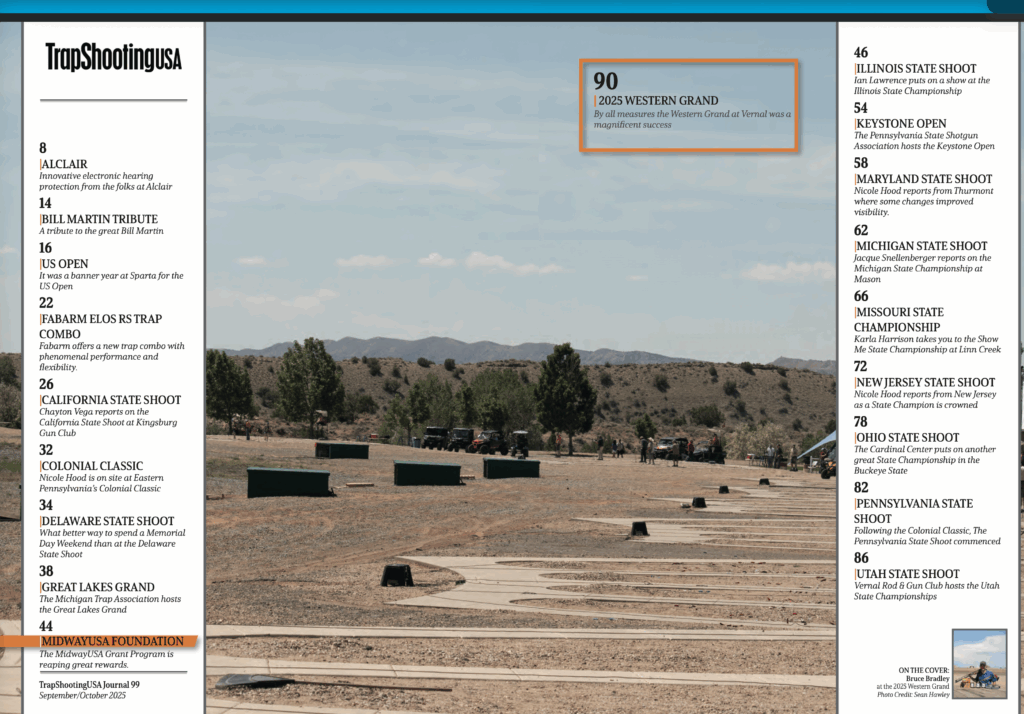 As the summer heat fades and the competition season hits full stride, the September/October edition of TrapShootingUSA delivers another powerhouse lineup. From historic Grands and state shoots to inspiring profiles, innovative gear, and heartfelt tributes, this issue captures the pulse of trapshooting as the year’s biggest stories unfold.